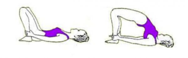- Relajar bien el cuello y no tener una actitud rígida para que cuando la pelvis esté arriba el cuello reciba el movimiento. Si hacemos la postura con esfuerzo mental es frecuente que el cuello y la nuca queden tensos y no se estiren.