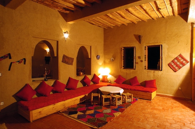 Cuando nos alojemos en Khamlia (pueblo de los negros) lo haremos en haimas provistas de colchón, sábanas, mantas y toallas . También hay servicios de baño y ducha de agua caliente, en este caso compartidos.